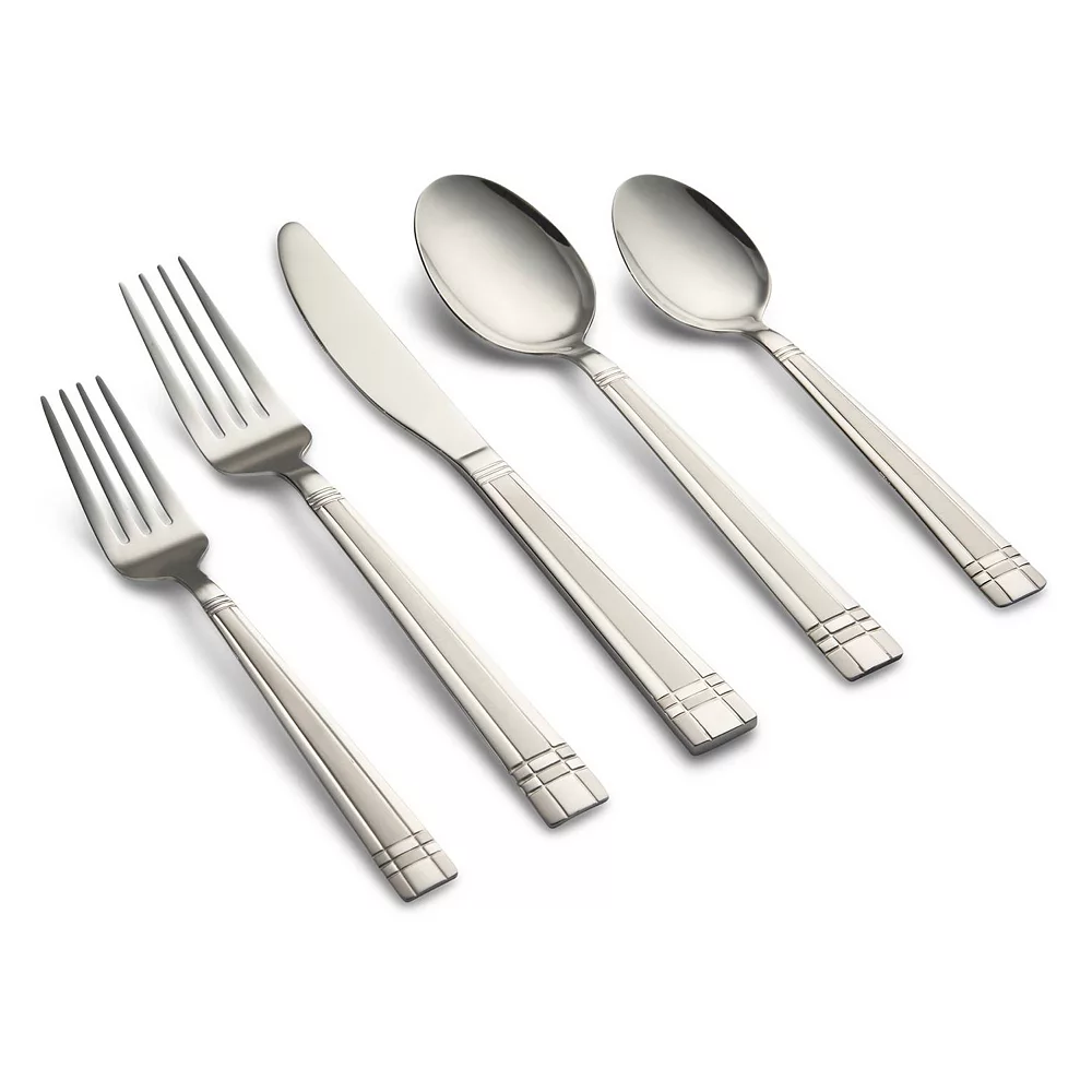 This Cambridge Axis Sand flatware set makes entertaining dinner guests a breeze.