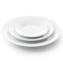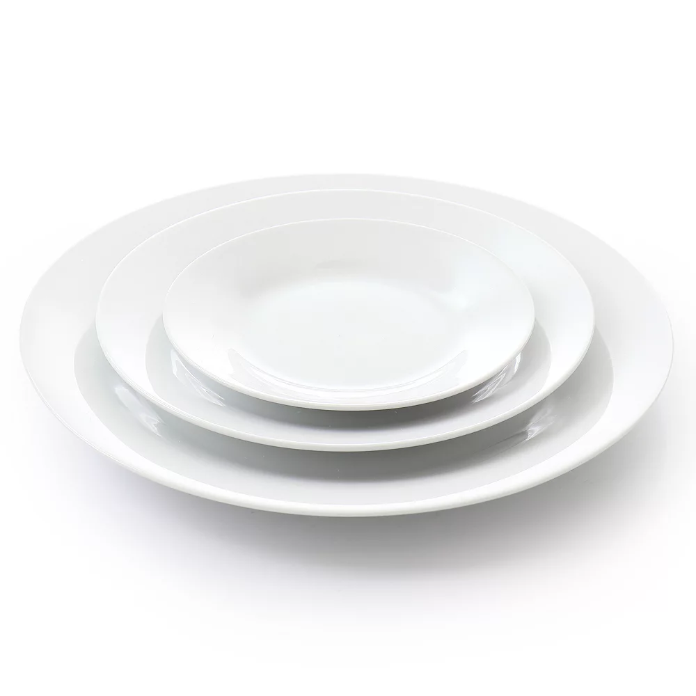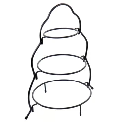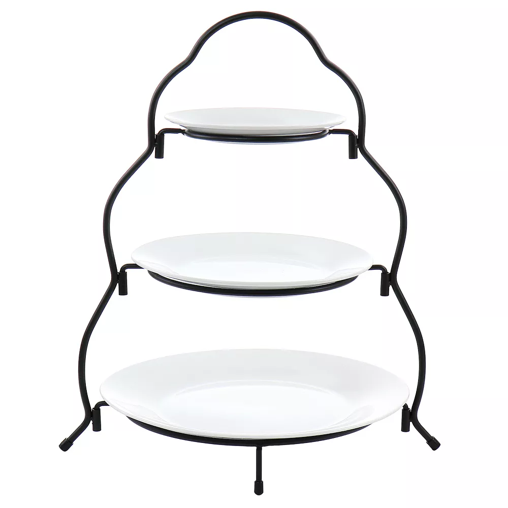 Take serving to the next level with the Elama 3 Tier Round Plate Porcelain Serveware Set. This three tiered set has a clean modern design that will fit perfectly with any home decor and place setting. Serve a different app on each tier or use for confections after your guests have had their fill! Constructed with a sturdy metal rack that holds three porcelain serving plates snugly. This serving set is perfect for parties or for every day countertop storage use!