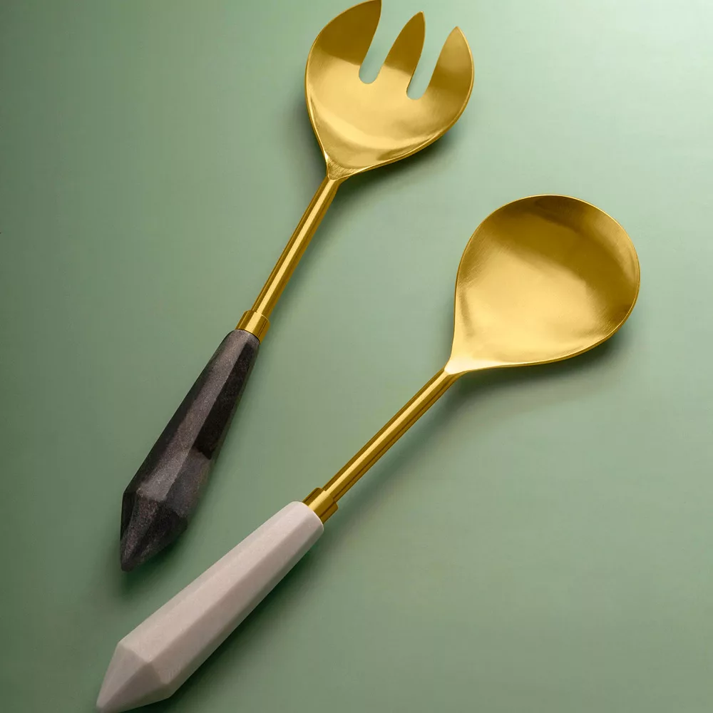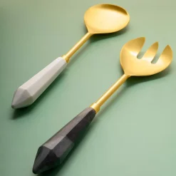 This pair of white and gray marble serving spoons are of made high quality, ethically sourced & polished white, gray marble and high grade stainless steel having a natural rustic look. Hand craftsmanship & natural variations in the color, weight and veining of natural marble makes our salad servers a singular work of art.
