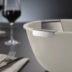 Conventional salad servers are often stored separately to the bowl and inevitably take up precious drawer space. In this smart set from Joseph Joseph, however, the servers conveniently store on the edge of the bowl, freeing-up drawer space and eliminating the need to hunt around for them when required.
