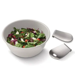 Conventional salad servers are often stored separately to the bowl and inevitably take up precious drawer space. In this smart set from Joseph Joseph, however, the servers conveniently store on the edge of the bowl, freeing-up drawer space and eliminating the need to hunt around for them when required.