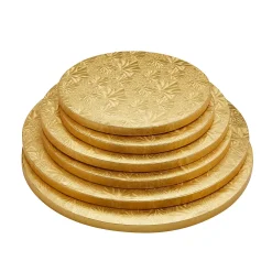 - Cake Boards: These round cake boards are the perfect way to present your cakes, cupcakes, muffins, and baked goods in an elegant and professional way