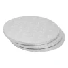 Present your cakes and desserts in style thanks to these silver cake drums. Use this set of 6 cake boards to serve delicate appetizers, desserts, and other culinary treats. The sturdy embossed board looks luxurious and delicate, and it is perfect for decorating and transporting cakes and other desserts. The scalloped edges will instantly elevate your dessert table at an upcoming wedding, baby shower, birthday party, or anniversary.