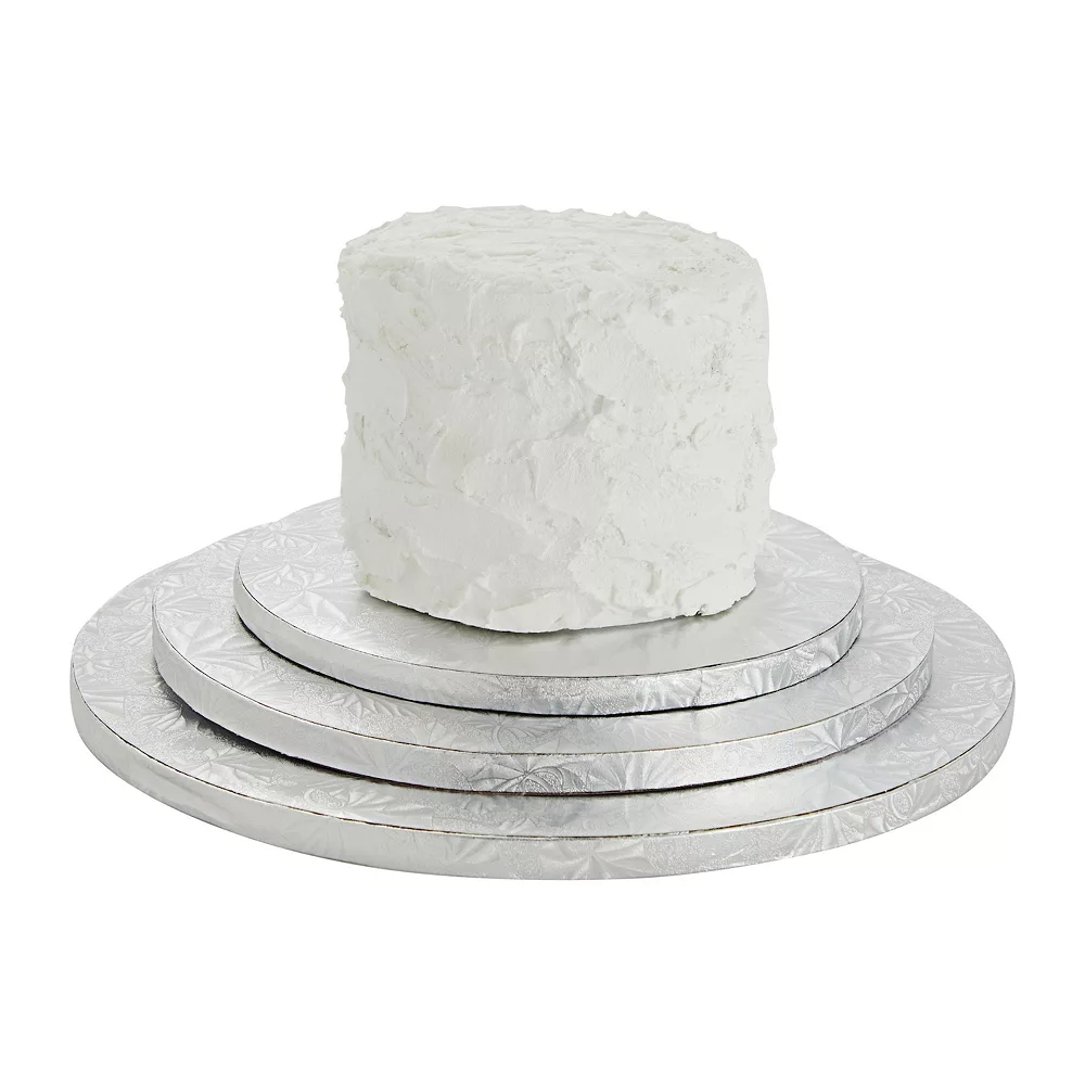 - Cake Boards: These round cake boards are the perfect way to present your cakes, cupcakes, muffins, and baked goods in an elegant and professional way