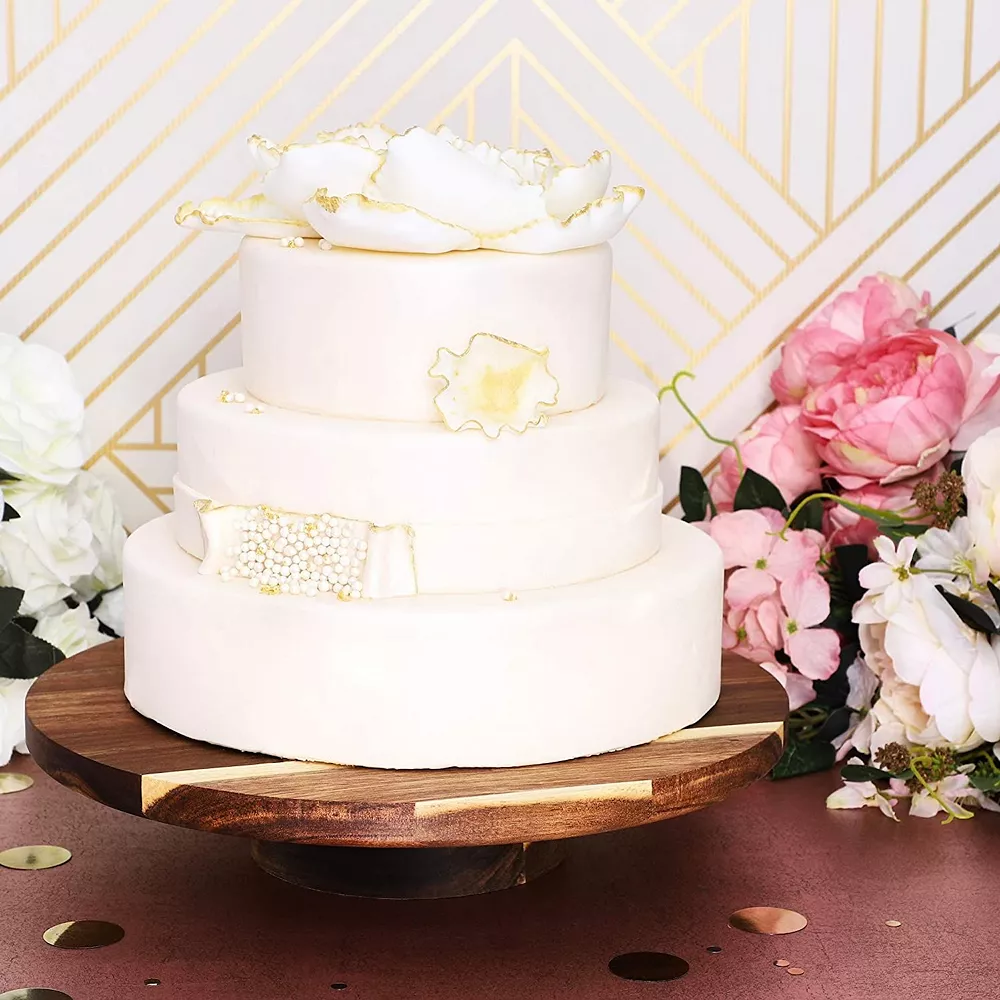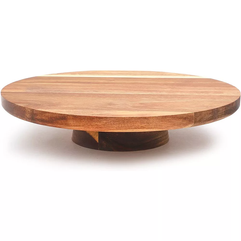 - PRODUCT: Elegant and stylish round wooden cake stand for displaying cakes, appetizers, and desserts