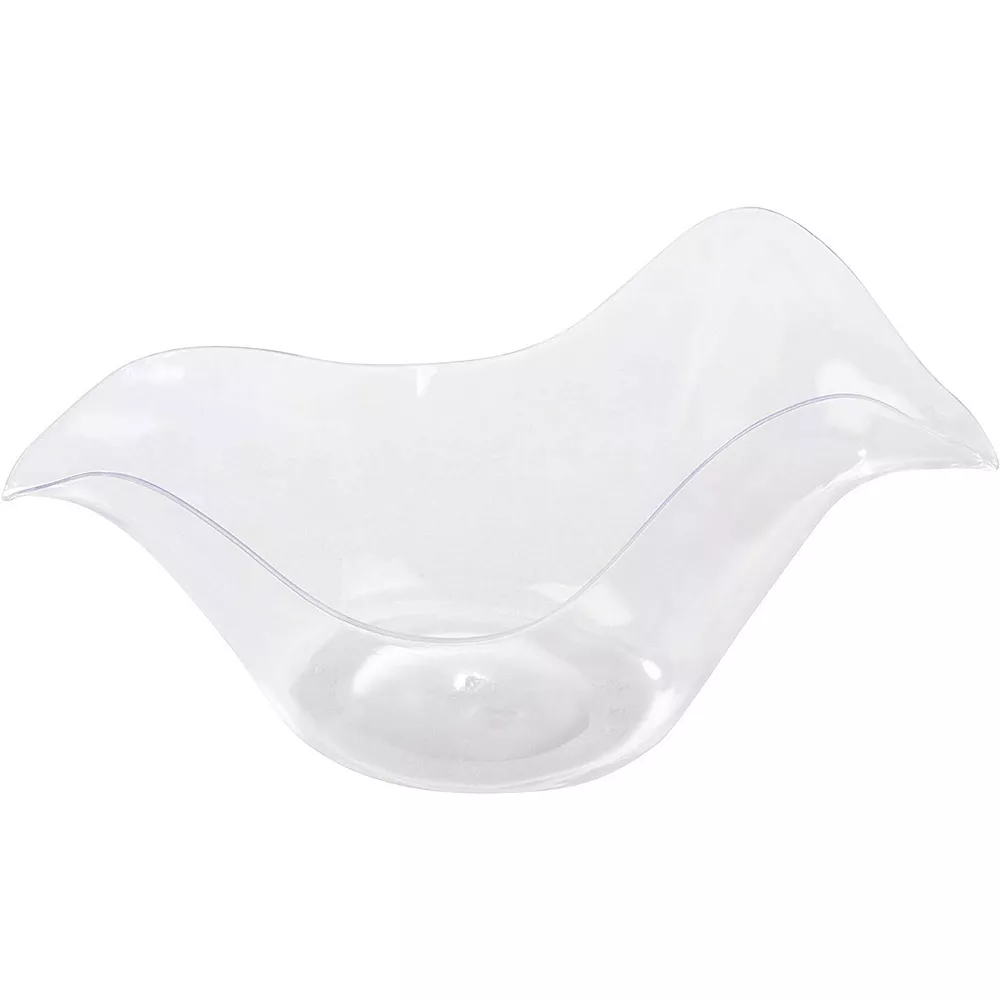 Serve up style along with the food and fun at your next special event or occasion with this set of clear appetizer bowls. They are perfect for appetizers, fruit, and finger foods – and due to the small sizes, they encourage smaller portions to reduce food waste. The flower like shape of the bowl adds flair to the dining experience, and also makes them ideal for holding condiments, butter, dressings, and much more. These features make the small party bowls ideal for family gathering, parties, and even large-scale catering events. The bowls are made of plastic.