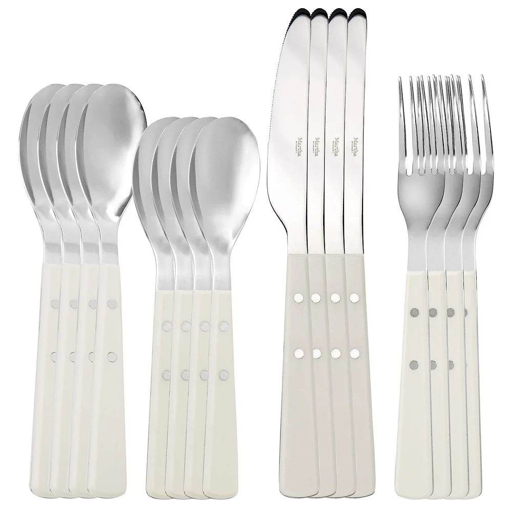The 16 Piece Gibson Everyday Garden Cottage 16 Piece Flatware Set comes with full service for four people. This set can be used with your every day dinnerware or to dress up your table. The simple Cream colored handle is sleek and simple and will go well with most kitchen decor. Stainless steel construction for lasting use and dishwasher safe (avoid detergent containing lemon) for easy and worry free clean up.