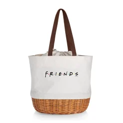 The Friends Coronado Basket is a roomy picnic tote bag featuring a willow wicker bottom, canvas body fully-lined interior and Friends logo.
