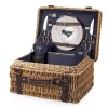 - Picnic set includes: 1 picnic basket, 2 plates, 2 wine glasses, 2 forks, 2 knives, 2 spoons & 1 roll-up flatware pouch