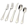 Dinner guests will admire your eye for style when you set the table with this Skandia Mirabella Satin Gold 20-piece flatware set.