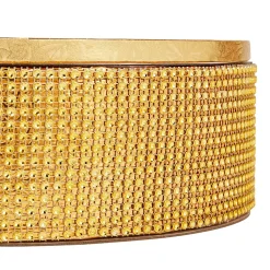 Display elegant desserts or cakes at your upcoming baby shower, engagement party, wedding, or family gathering with this gold cake stand and cake drum set! This rhinestone cake stand will make the perfect addition to any table setting or dessert bar. Use the gold cake drum and stand to hold a variety of sweet treats such as cupcakes, cake pops, a wedding cake, muffins, chocolate-covered fruits, and other small treats for any gathering. This gold cake stand set measures 16 x 16 x 3.5 inches and cake drum measures 16 x 16 x 0.5 inches. Note: remove the film before using the cake stand.