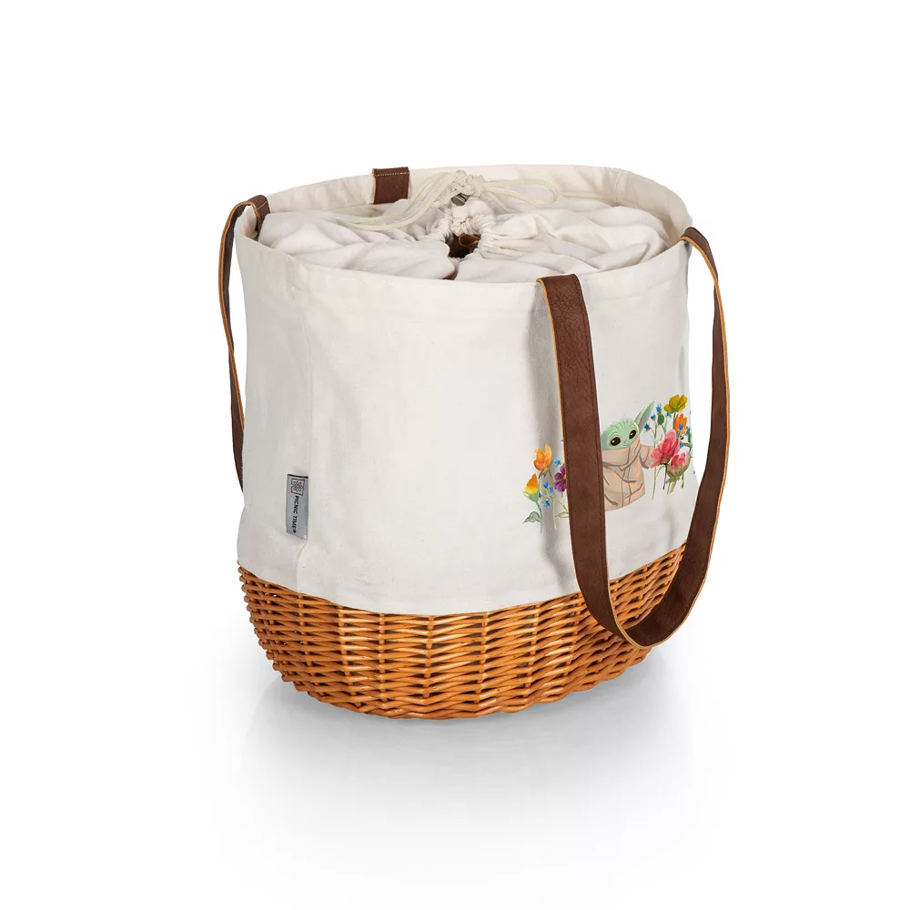 The Mandalorian The Child Coronado Basket Tote is a fantastic addition to any social outing or interstellar travel, including an adorable floral depiction of everyone’s favorite Star Wars character, Grogu.