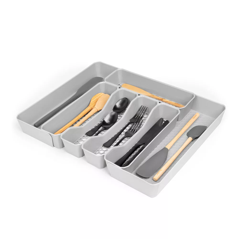 Use the functional design and contemporary sensibility of Hexa 5-Section Expandable Silverware Tray to neaten up the drawers in your kitchen, bathroom, office, craft room or garage.