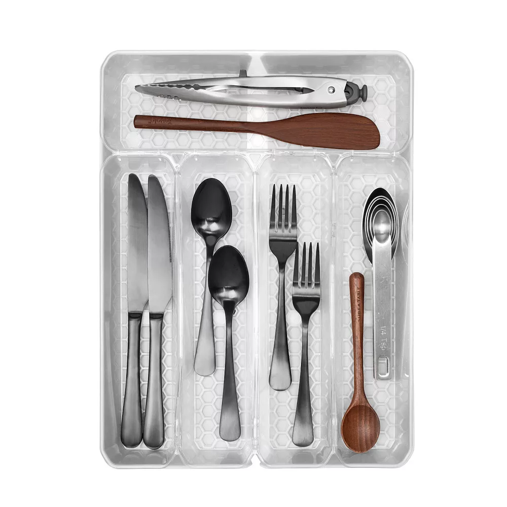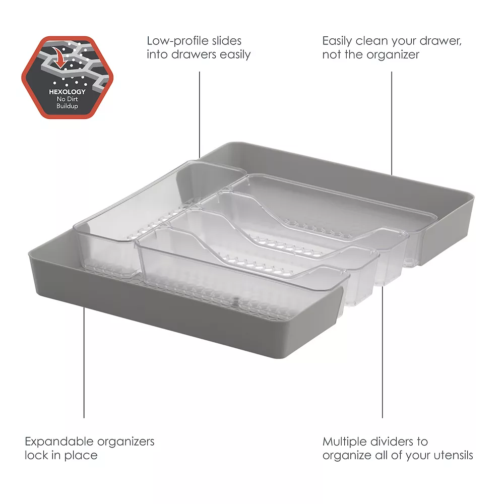 Use the functional design and contemporary sensibility of Hexa 5-Section Expandable Silverware Tray to neaten up the drawers in your kitchen, bathroom, office, craft room or garage.